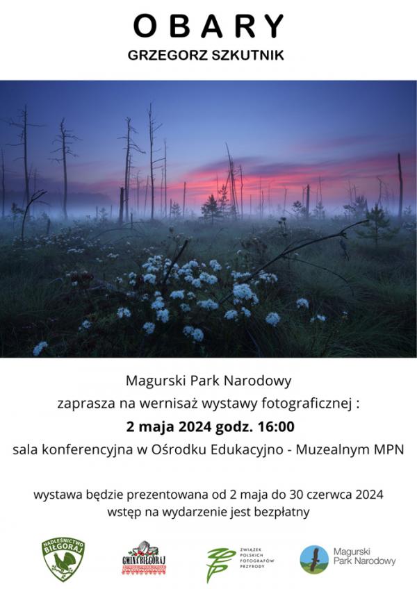[ Czytaj całość ]2 maja br. roku o godz. 16:00 w Ośrodku Edukacyjno-Muzealnym Magurskiego Parku Narodowego w Krempnej odbędzie się wernisaż autorskiej wystawy fotograficznej Grzegorza Szkutnika pt. "Obary". Będzie to 15 prezentacja wystawy przygotowanej w 2019 roku z okazji 45 rocznicy objęcia ochroną naturalnych fragmentów torfowisk przejściowych i wysokich typu subkontynentalnego znajdujących się w zachodniej części lasów Puszczy Solskiej.
