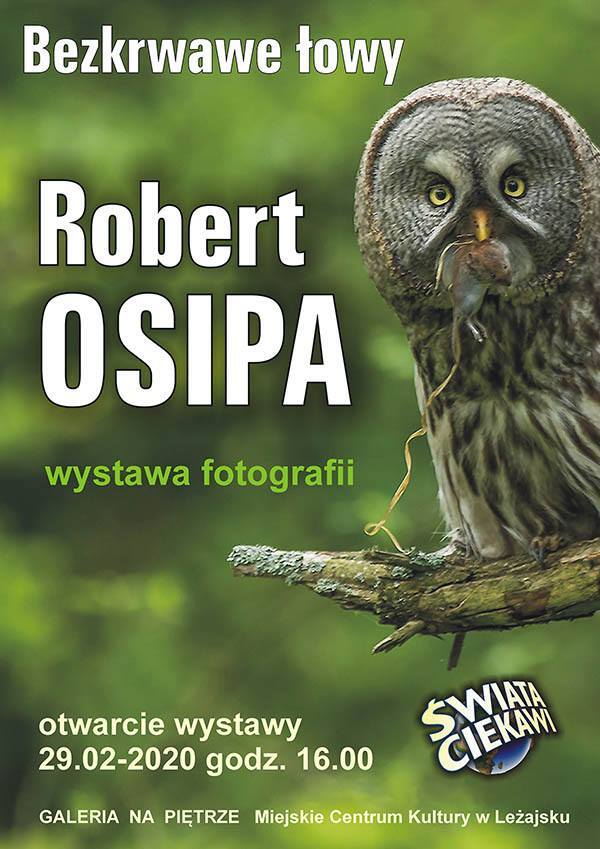 Zapraszamy na wernisaż wystawy fotograficznej Roberta Osipy pt. "Bezkrwawe Łowy", który odbędzie się w dniu 29 lutego o godzinie 16:00 w Miejskim Centrum Kultury w Leżajsku w ramach 4 Leżajskiego Festiwalu Podróży "Świata ciekawi". Na wystawie zaprezentowanych zostanie 28 fotografii powiększonych do formatu 100x70 cm przedstawiających wybrane gatunki ptaków i ssaków sfotografowanych w swoim naturalnym środowisku. W trakcie wernisażu odbędzie się również pokaz autorskich prezentacji cyfrowych.