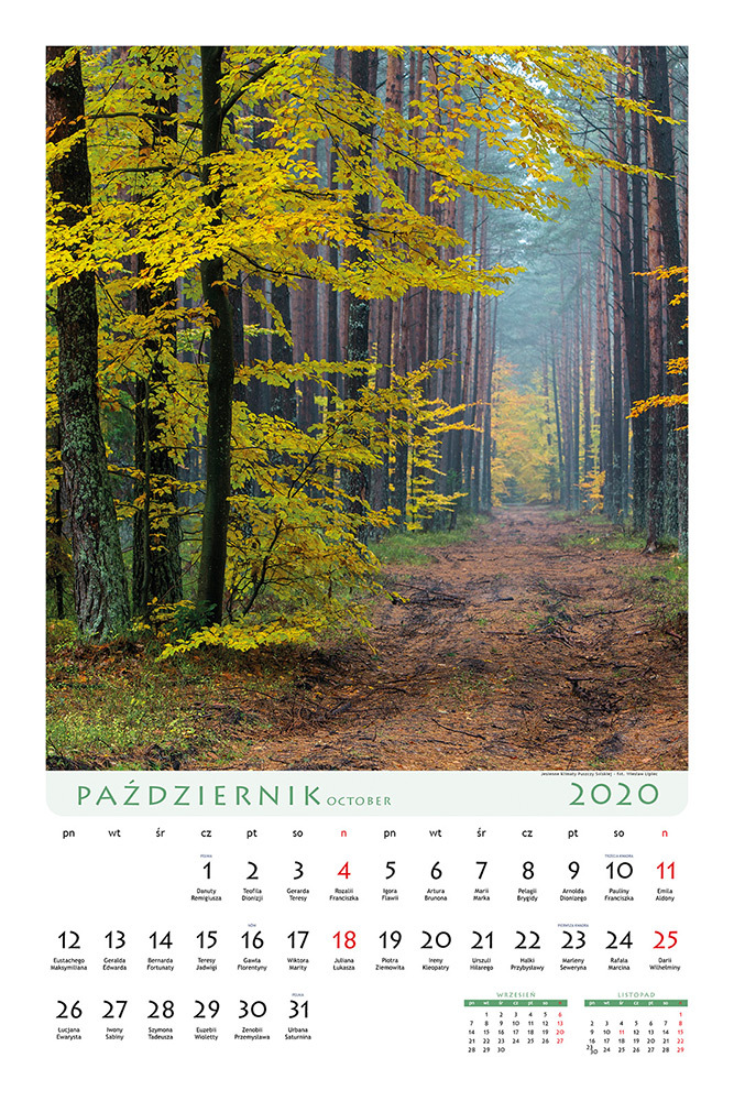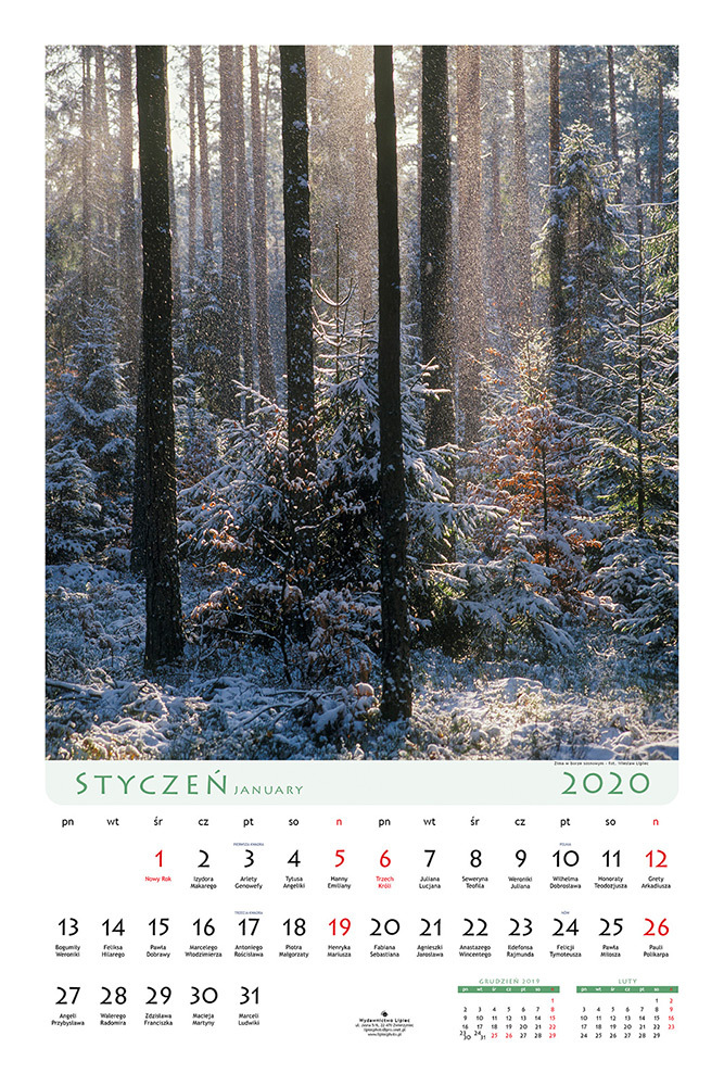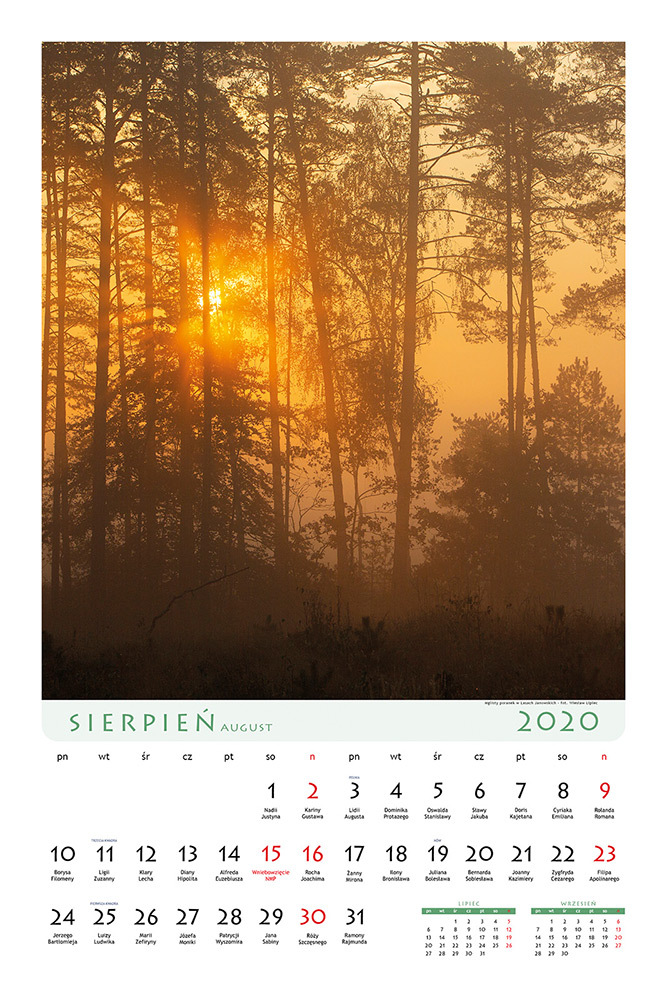 Pod koniec 2019 roku ukazał się kolejny kalendarz ścienny na 2020 rok, prezentujący piękno i bogactwo przyrody lasów naszego regionu. Na 13 planszach formatu 60x42 cm prezentuje on wybrane fragmenty krajobrazu leśnego z terenu Regionalnej Dyrekcji Lasów Państwowych w Lublinie w różnych porach roku. Autorami zdjęć w kalendarzu są: Wiesław lipiec oraz Grzegorz Szkutnik. Kalendarz został wydany przez Wydawnictwo Lipiec we współpracy z kilkunastoma nadleśnictwami RDPL w Lublinie.